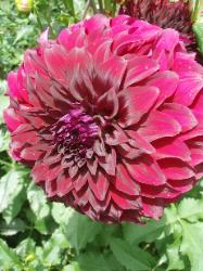 | Ryan C 7" blooms Bush height: 4.5' Tall Will go back and forth from bi-color to solid. Great Cut flower |